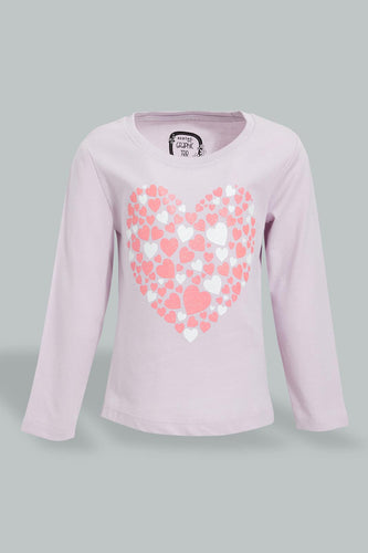 Lilac Heart Print T-Shirt تيشيرت بطبعة قلب باللون الليلكي