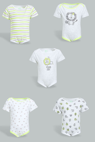 Grey And Yellow Lion Bodysuit Set (5 Piece) طقم رومبر بألوان متنوعة برسمة أسد (5 قطع)
