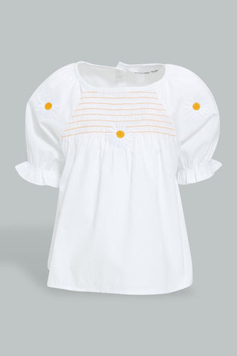 White Embroidered Blouse For Baby Girls بلوزة مخيط باللون الأبيض للبنات الرضع