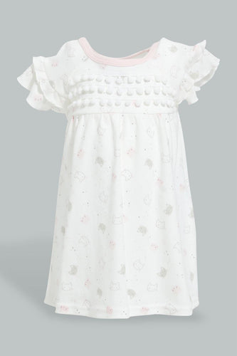 White Frill Sleeves Kitten Dress For Babies فستان مكشكش باللون الأبيض للأطفال