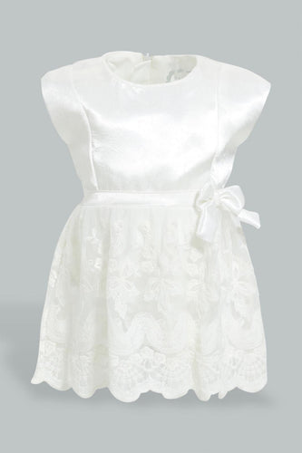 White Silk Lace Dress For Babies فستان حرير دانتيل ابيض
