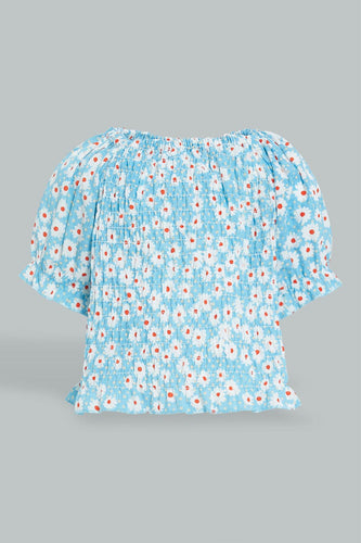 Blue Crinkled Blouse For Baby Girls بلوزة مجعدة باللون الأزرق للبنات الرضع