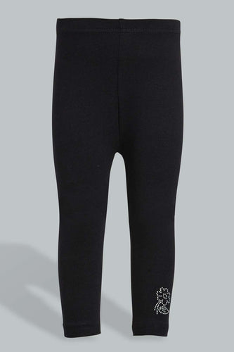 Black Embellished Legging For Baby Girls ليغينغز مزين باللون الأسود للأطفال البنات