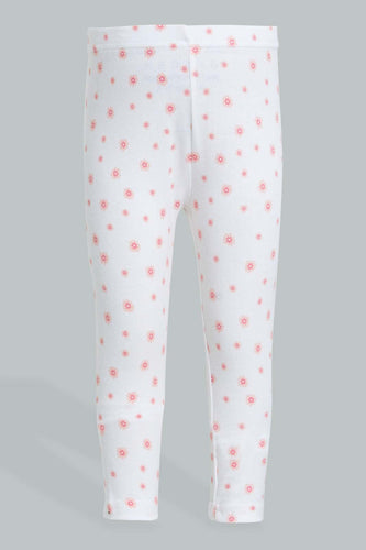 White Floral Legging For Baby Girl ليغينغز بطبعات أزهارباللون الأبيض للأطفال البنات
