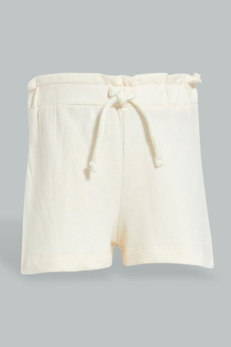 Ivory Pull On Short For Baby Girls شورت مطاطي باللون العاجي للبنات الرضع