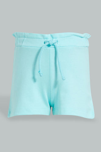 Blue Pull On Short For Baby Girls شورت مطاطي باللون الأزرق للبنات الرضع