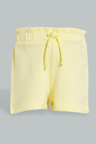 Yellow Pull On Short For Baby Girls شورت مطاطي باللون الأصفر للبنات الرضع