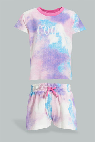 Multicolour T-shirt with Short Set (2 Piece) طقم كاجوال مزين بألوان متعددة (قطعتين)