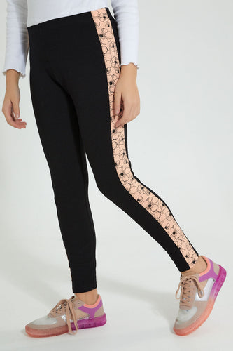 Black Side Flower Print Legging ليغينغز بطبعة أزهار على الجنب باللون الأسود