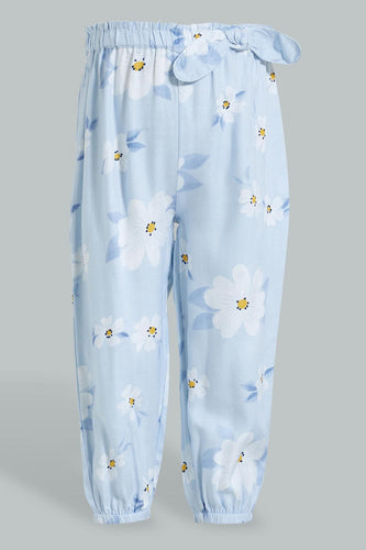 Blue Floral Trouser For Baby Girls بنطلون بطبعة أزهار باللون الأزرق للبنات الرضع