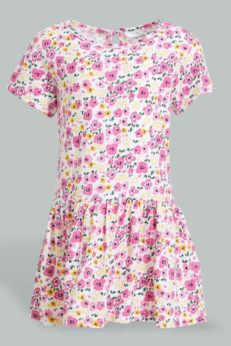Pink Floral Gathered Dress فستان مكشكش بنقشة أزهار باللون الوردي