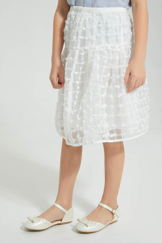 White Textured Skirt تنورة بارزة الملمس باللون الأبيض