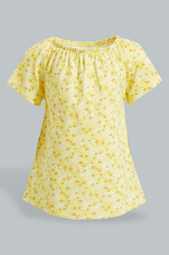 Yellow Flower Print T-Shirt تيشيرت بطبعة أزهار باللون الأصفر