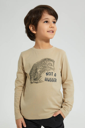 Beige Hedgehog Long Sleeve T-Shirt تيشيرت بطبعة قنفذ باللون البيج