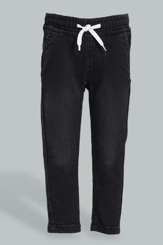 Charcoal Pull On Jean For Baby Boys جينز بخصر مطاطي باللون الرمادي الداكن للأولاد الصغار