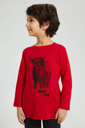 Red Yak Long Sleeve T-Shirt تيشيرت بطبعة الياك باللون الأحمر
