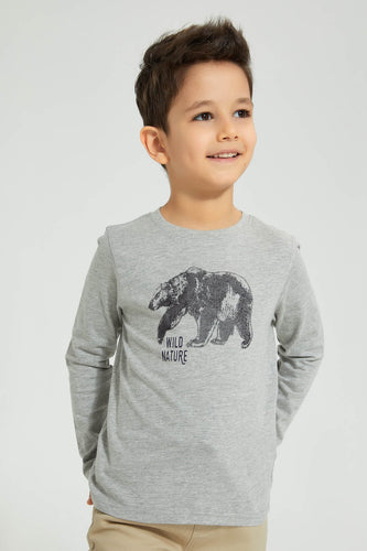 Grey Bear Long Sleeved T-Shirt تيشيرت باللون الرمادي بطبعة دب
