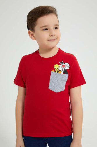 Red Looney Tunes T-Shirt With Pocket تيشيرت لوني تونز أحمر بجيب
