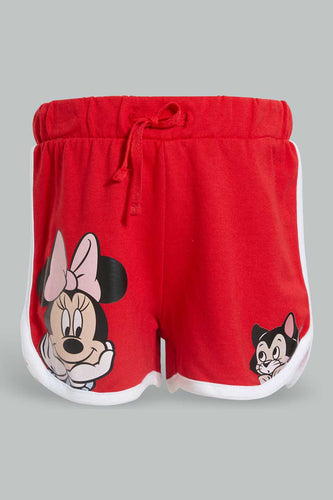 Red Minnie Mouse Short For Baby Girls شورت رياضي بطبعة ميني ماوس باللون الأحمر للبنات الرضع