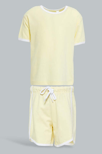 Yellow Ribbed Casual Set For Baby Boys (2-Pack) طقم كاجوال مكون من قطعتين بلون أصفر فاتح للأولاد الرضَع