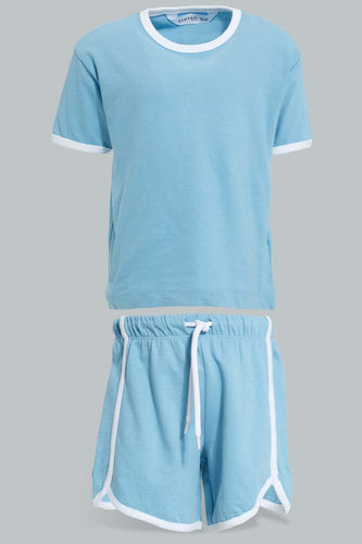 Blue T-Shirt And Short Set For Baby Boys (2 Piece) طقم كاجوال باللون الأزرق للأولاد الرضع (قطعتين)
