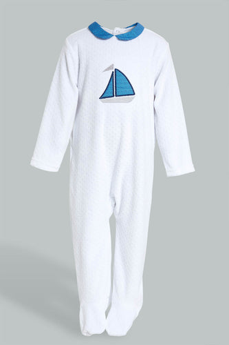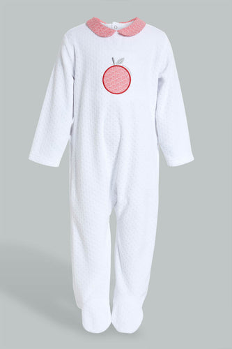 White Apple Embroidered Velour Sleepsuit رومبر قطيفة مخيطة بتفاح باللون الأبيض