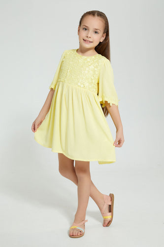 Yellow Lace Dress فستان دانتيل باللون الأصفر