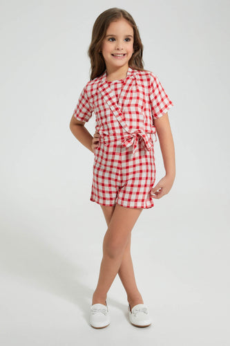 Red And White Checkered Playsuit بلاي سوت كاروهات باللون الأحمر والأبيض