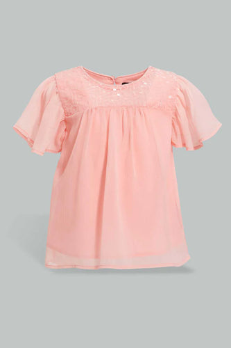 Pink Top With Studs and Placement Print بلوزة باللون الوردي بطبعة