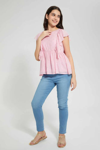 Pink Embellished Ruffle Blouse بلوزة مزينة باللون الوردي