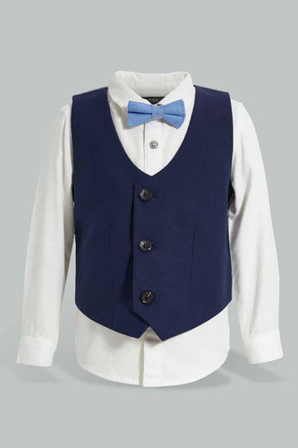 Navy Vest And White Shirt Set For Baby Boys (3 Piece) طقم قميص أبيض وفست كحلي مع ربطة عنق باللون الأزرق (3 قطع)