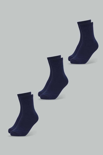طقم جوارب باللون الكحلي بطول كامل للأولاد الكبار (3 قطع)