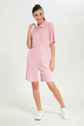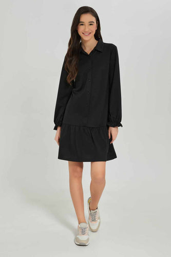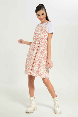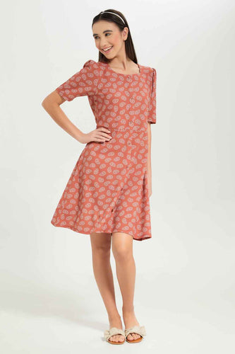 فستان باللون النحاسي مطبوع بازرار للبنات الكبار