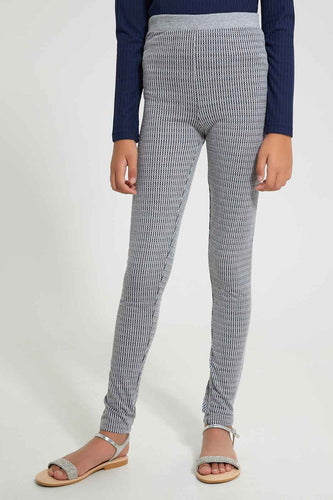 Grey Jacquard Legging With Waistband بنطلون ليجينجز باللون الرمادي بخصر عريض