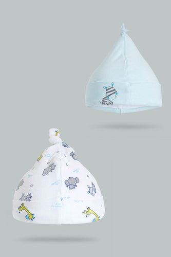 Blue And White Printed Beanie Set (2 Piece) طقم قبعات باللوني الأزرق والأبيض بتصميم مطبوع (قطعتين)