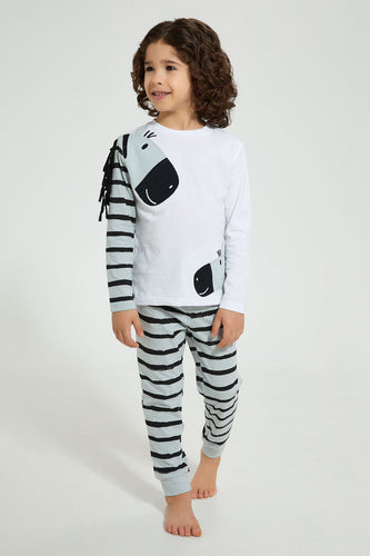 Blue And White Applique Zebra Pyjama Set (Pack Of 2) طقم بيجامة مزينة بحمار الوحشي باللون الأزرق والأبيض (قطعتين)