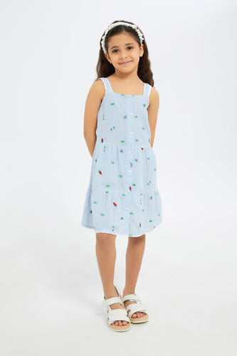 طقم فستان باللون الأبيض والأزرق مع تيشيرت للبنات الصغار (قطعتين)