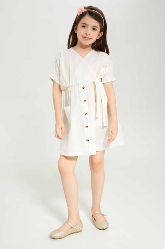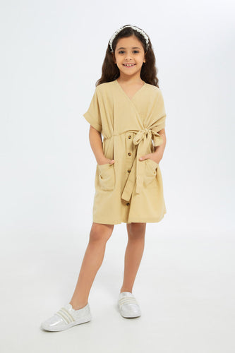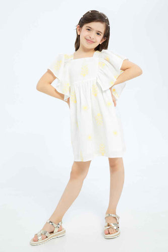 فستان مطرز باللون الكريمي والأصفر للبنات الصغار