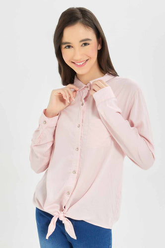 قميص بربطة أمامية باللون الوردي للبنات الكبار