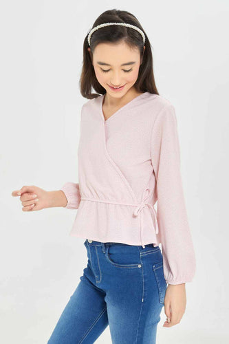 بلوزة بخصر مطاطي باللون الوردي للبنات الكبار