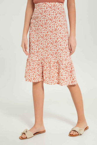 تنورة طبقات مطبوعة باللون الأبيض للبنات الكبار