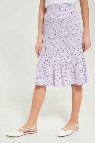 تنورة بطبعة أزهار باللون البنفسجي للبنات الكبار