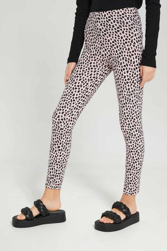 ليغينغ مطبوع باللون الأسود والوردي للبنات الكبار