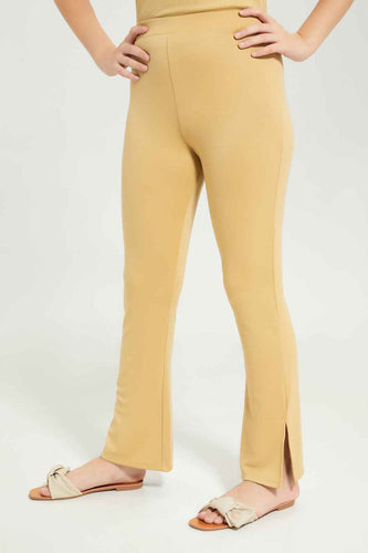 بنطلون بقصة واسعة باللون البيج للبنات الكبار