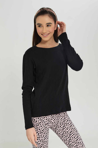 تيشيرت بأكمام طويلة باللون الأسود للبنات الكبار