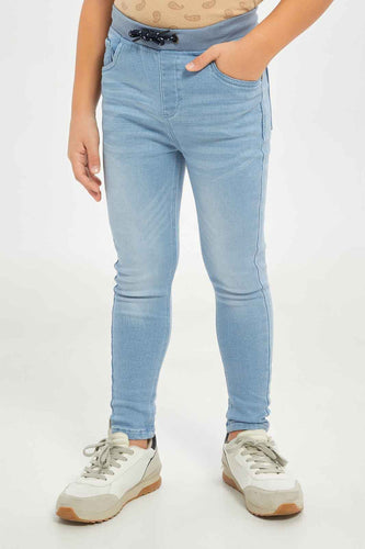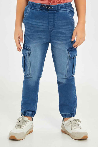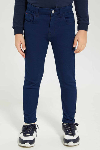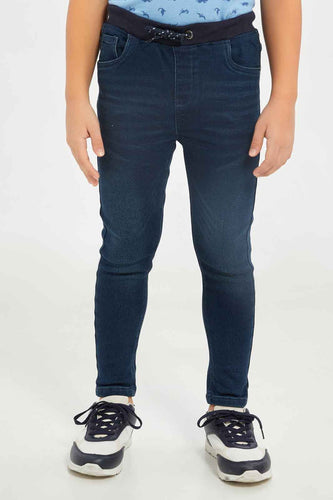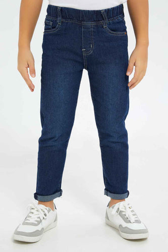 بنطلون جينز باللون الكحلي بخصر مطاطي للأولاد الصغار