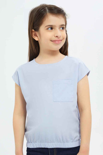 بلوزة بأكمام قصيرة باللون الأزرق للبنات