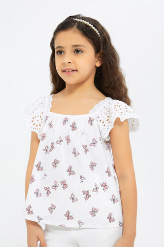 بلوزة مطبوعة باللون الأبيض للبنات الصغار