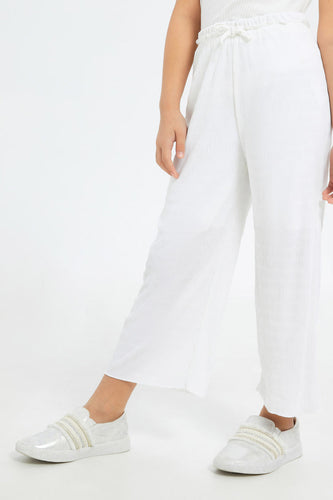 بنطلون مجعد باللون الأبيض للبنات الصغار