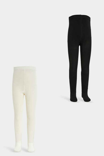 طقم جوارب طويلة باللون الأسود والعاجي للبنات الصغار (قطعتين)